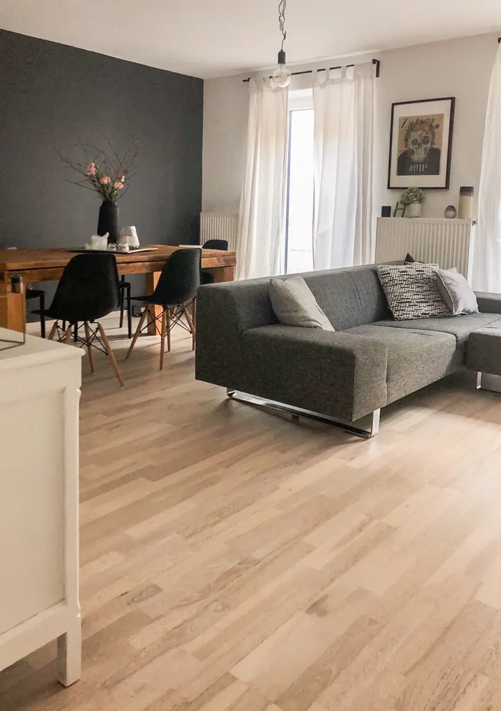 Die Wohnung liegt im 1. Obergeschoss und wurde 2017 kernsaniert. Die großen französischen Fenster lassen diesen Wohntraum permanent mit Sonnenlicht erstrahlen.