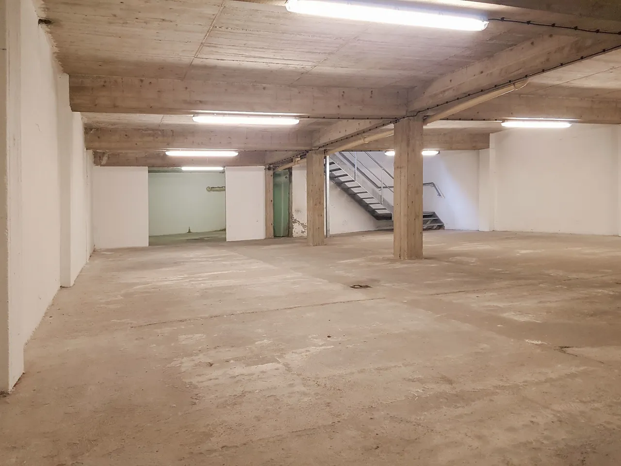 Im Erdgeschoss gibt es eine Tordurchfahrt zur Garagenhalle mit Keller und Stellplätzen sowie ein Ladenlokal mit Appartement.